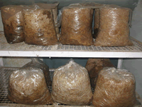 The spawned bags or blocks are kept in incubation room for mycelial growth. Spawn bags can be kept on a raised platform or shelves or