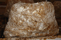 a nylon rope. The block is incubated as such and after mycelium growth polythene sheet is removed.