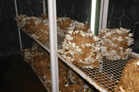 few hours. Temperature of the pasteurization room is manipulated with the help of steam through a boiler. Substrate after cooling at room temperature is seeded with spawn. The entire process take 3-5