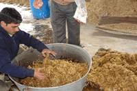 The substrate after chopping (5-10 cm) is soaked in hot water (65 to 70°C) for one hour or 60 to 120 minutes at 80C or