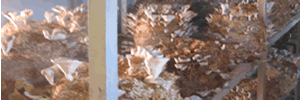 (20-30C) forms very thick mat like structures due to mycelium aggregation and sometimes young pinheads and fruitbodies start developing in the spawn bottle itself. The spawning should be done in a