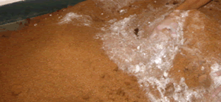 Sawdust, obtained from the saw mills, is amended with 20% wheat bran and is wetted to a level of 65% moisture. Calcium sulphate (gypsum) and calcium carbonate (Chalk powder) are added to get a pH of